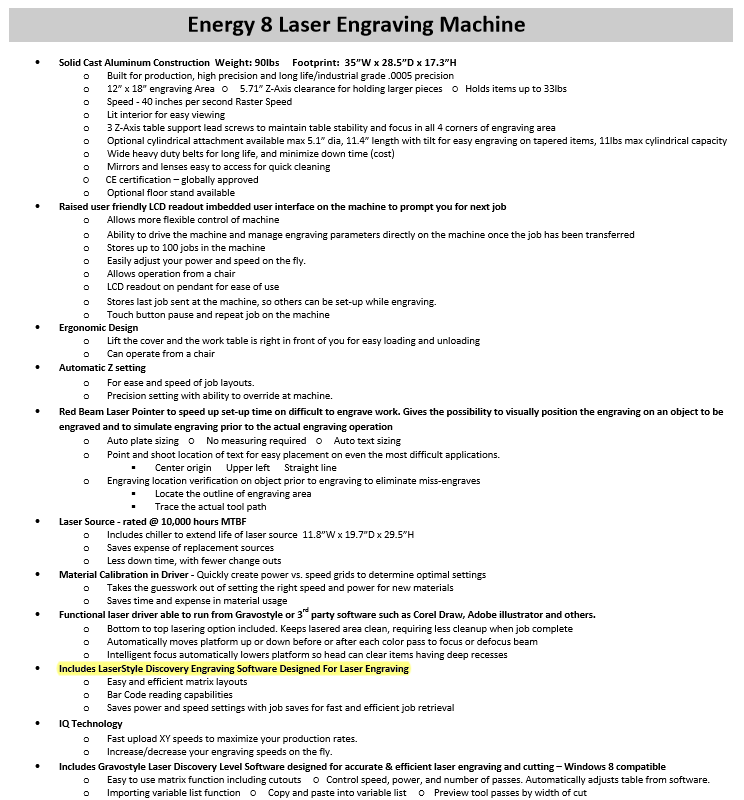 - Includes easy to use Laserstyle software.